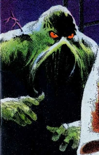 What neither Damian nor Linda realized though was that Alex Olsen never truly died. His chemically bathed body reacted with the vegetation of the nearby swamplands, transforming him into a shambling, muck-encrusted Swamp Thing. Unable to lend voice to the rage growing inside of him, he swore that Damian would pay the price for his betrayal. The Swamp Thing burst through the windows of the Olsen estate and attacked Damian. Easily snapping his neck with his powerful fingers, he let Damian's corpse slide down onto the floor. Linda emerged in the room and began screaming. The Swamp Thing turned towards her, but was unable to tell her that he was in fact her lost husband. Terrified, Linda ran from his presence.
