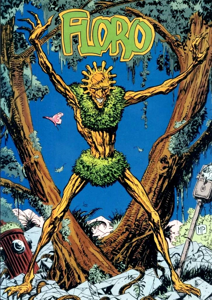 Apparently, and on his own account, Jason Woodrue wasn’t born on Earth, rather on a different dimension called Floria, a world inhabited by dryads in which sentient human-plant hybrids were the dominant species. Due to unknown reasons, he was sentenced to death on his world and exiled on Earth to die as a human being. Here, using the advanced botanical knowledge of his world, he easily became a botany professor at Gardner University, using academic funds to continue his researches. Among his students there were quite a bunch of people who would have been pivotal in the future of The Green, the embodiment of all plant life on Earth: Alec and Linda Holland, Pamela Isley and Philip Sylvian. While teaching his most gifted students some of the secrets he alone knew about plants, Woodrue also tried to transform Earth into a copy of his homeworld, using his knowledge to prompt the plants to claim sovereignty over the world. Calling himself the Plant Master, Woodrue launched an all-out attack on the planet, but he was stopped by The Atom right before he could put in motion his cataclysmic project. Considered delusional and psychotic, Woodrue was arrested and locked in Arkham Asylum, where he however was able to continue his work (mainly because all his experiments were taken for harmless hobbies by the guardians who didn’t understand them). Woodrue realized he needed more power to reach his goals, so he studied a formula that would have connected him to the Green on a deeper level: thanks to his potion, he was transformed into a human-plant hybrid, with leaves for hair and wood for skin, and he dubbed himself the Floronic Man, ready to take over the world once again. According to another source, however, this transformation was caused by Herupa Hando Hu, a Guardian of the Universe, and Nadia Safir, a Zamaronian, who selected champions to “renew” the Earth and bring it to the new millennium; Woodrue, apparently, was mistaken for a hero due to his love for the planet’s vegetation, and transformed as well.